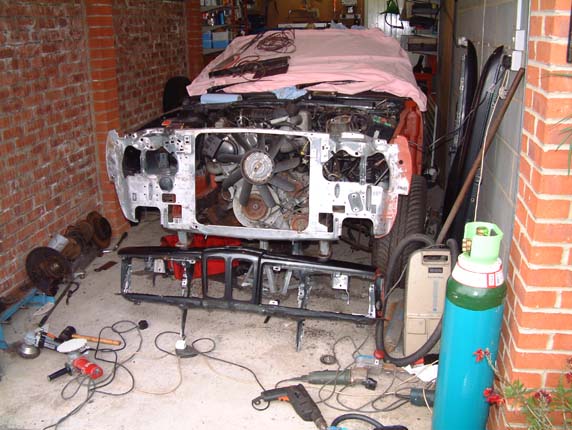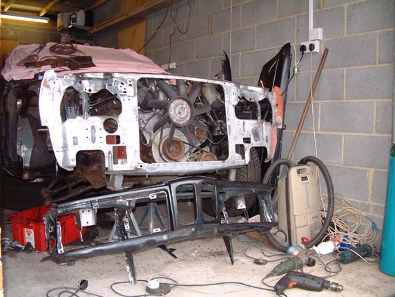 The idea was to take the wings off, make repairs to the inner wings and get it back on the road, as always with these things the repairs turned out to be far more numerous than originally thought, this has lead to the car being off the road since late 2002. Progress was good at first, but Neil changed jobs and now works shifts, which makes it difficult to get on with it together, but we will persevere and hopefully with our combined efforts we will have it back to its former glory some time in the future.
