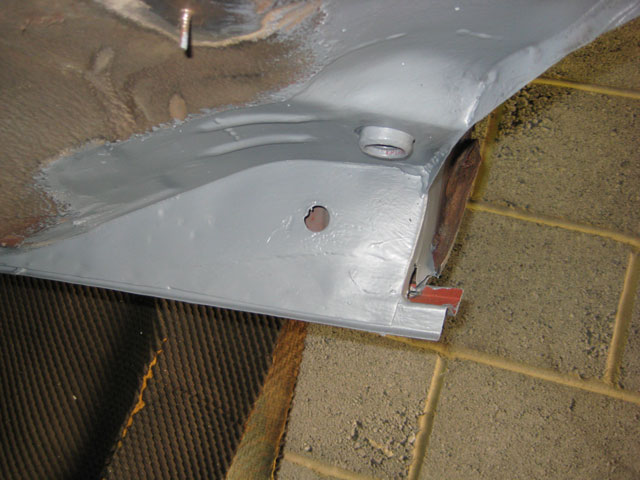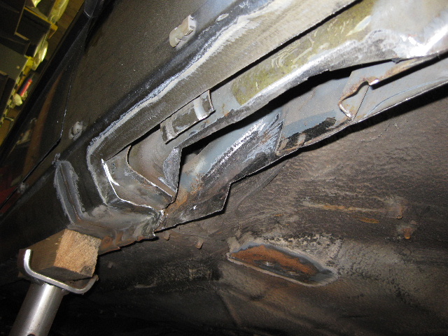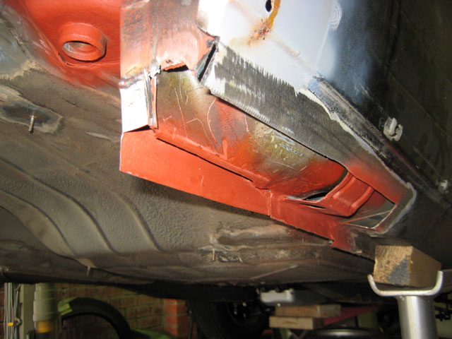 This is the view from the sill side, I decided to make the join halfway up the sill, as it will be easier to blend in, I also had to repair the rear jacking point stiffener within the sill |