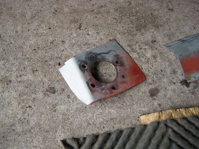 The repair patch for the subframe mounting point, smaller holes are again for pool welding to the metal above |