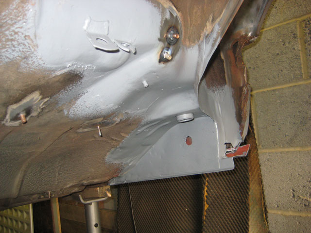 This is the Nose back on, there were also repairs to the jacking points and front sections of the floor, here we had stone chipped and then painted with hammerite the whole area |