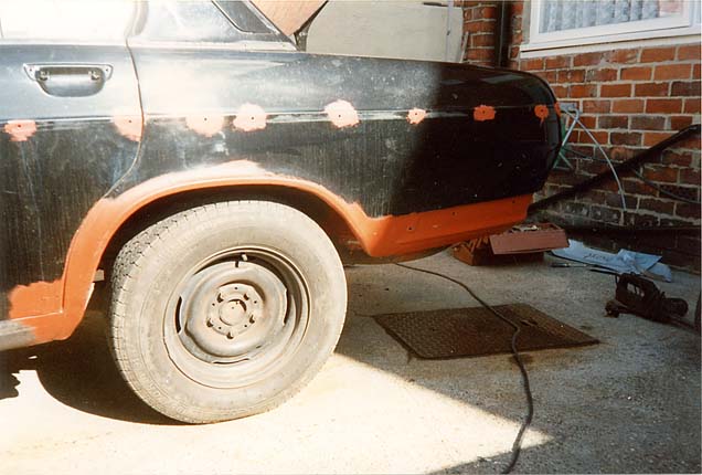 All the welding complete now for the paint preparation, with a black car like this with big flat sides the preparation is critical for a good finish. |