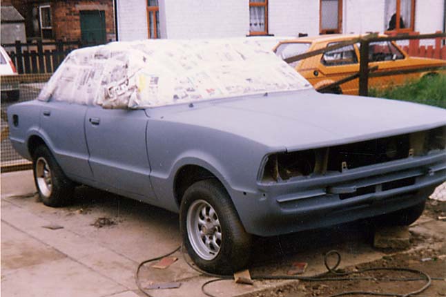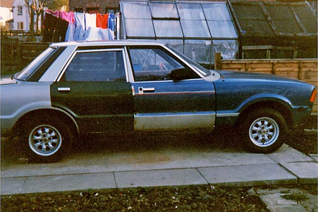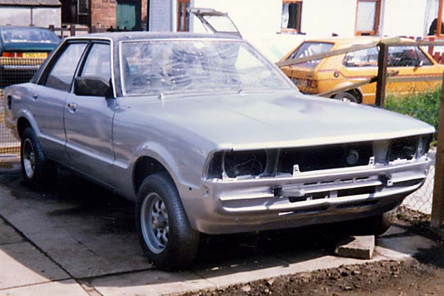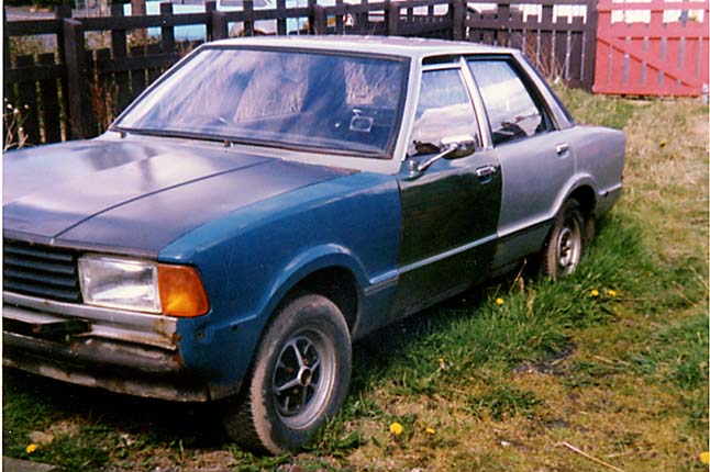 This was bought as a stolen recovered rolling shell, there was no interior, doors, bonnet, boot, engine or gearbox. Fortunately I had also bought a mechanically excellent Mk IV Cortina, so most of the running gear was swapped straight over, and the local breakers yard provided the rest of the parts, even the vinyl roof was peeled from another scrap yard car.