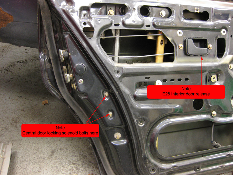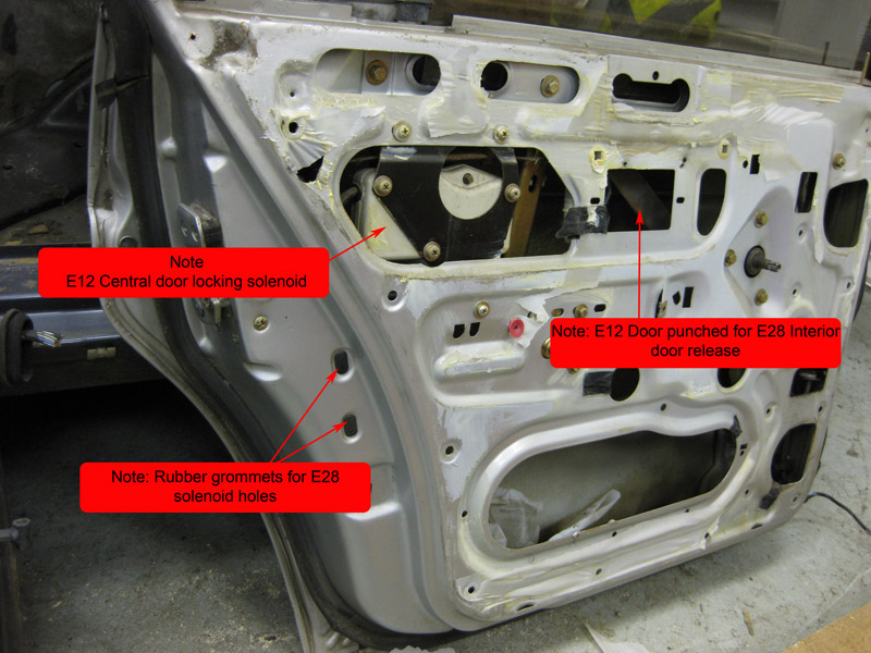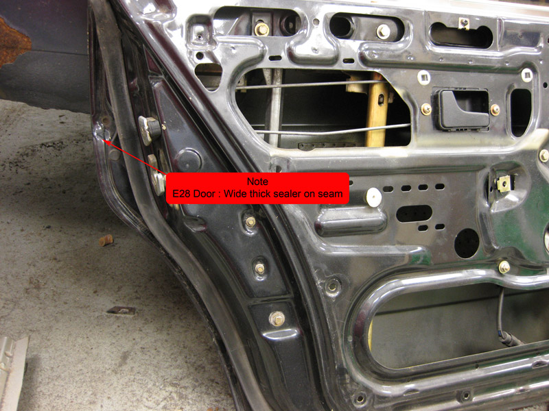 There are various other improvements that were made to the E28 doors to help with wind noise and sound proofing, from a rubber grommet around the interior lock knob, to increased sound proofing between the door trim and door skin, to a rubber sealing gasket around the door check strap, these can all stay on the E28 doors, or can easily be incorporated into E12 doors |