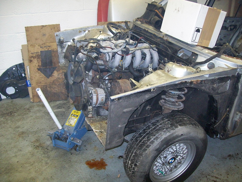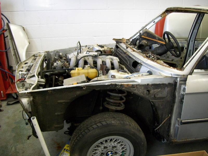 The car tucked up in my garage awaiting its fate, as I had said earlier the drivers side inner wing had been replaced, most likely due to an accident, it also turned out that the bonnet, front panel and front wings were in excellent almost as new condition, probably also replaced after the crash, these will definitely come in handy for project "M"
