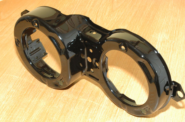 The Headlamp brackets after shot blasting and painting, I sprayed them in gloss black 2 pack for a durable hard finish. I have always just used a cheap £9.99 touch up gun for spraying parts like this in the past, the results have always been ok, but just recently I bought a SATA Minijet 4 HVLP gun, with a 1.2 SR tip, it is a top of the range gravity fed touch up gun and I think the results speak for themselves, I would thoroughly recomend this gun for anyone considering buying one, and it really proves the old saying that you get what you pay for.