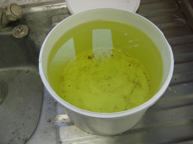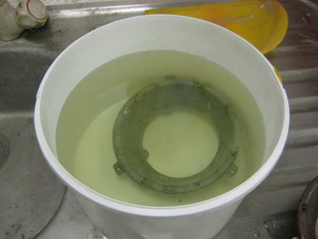 After 24 hours, you take the parts out, the solution has started to go yellow, this can be reused in this state until it is very dark yellow, almost black in colour. As I had already shot blast most of the rust off then the solution should last a while longer yet. |