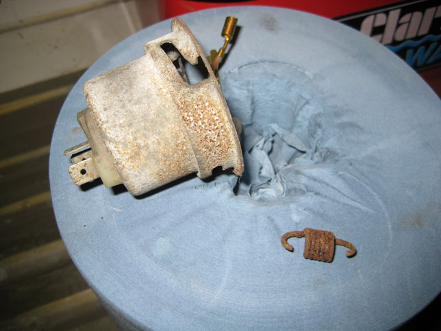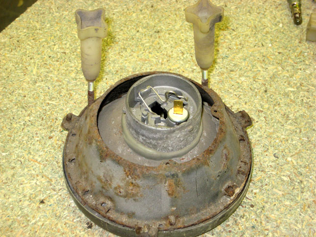 These are the connecter to the rear of the Hella Headlight unit and one of the retaining springs to the above bowl, notice how rusty the spring is. |