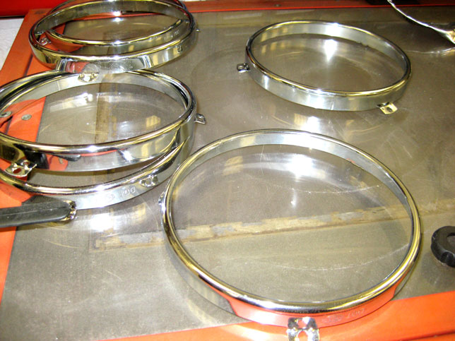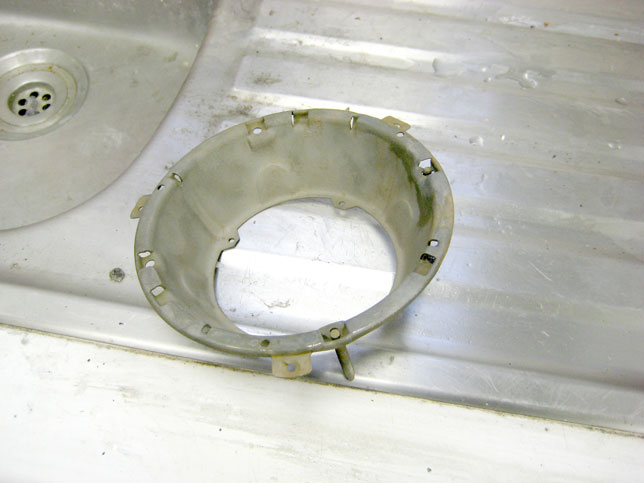 The Deox C solution also worked on the chrome headlight bezels, removing all traces of rust without affecting the chrome plating, these are the bezels after washing but before any cleaning with chrome cleaner |