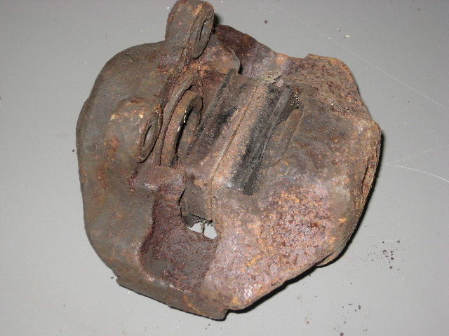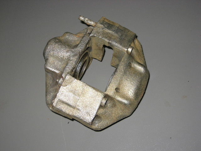 After a soak in the Deox C solution, and a quick wire brush after 24 hours, and then again after 48 hours this is the cleaned up caliper, the yellow colour is rust starting to form almost straight away |