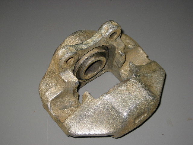 Here the part is coated in Zinc, there is however poor coverage to some of the area around the bolt holes and further inside the piston housing area, after reading several forums, it seems to suggest that using a fish tank aerator to agitate to the solution will help get a more even coverage. |