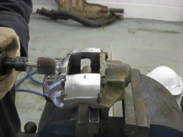 Then a change to a die grinder fitted with a 100 grit flap wheel, to smooth things out even more, and get into those harder to reach spots. |