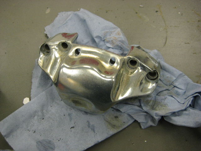 I then polished the part, using a chrome cleaner, on a cloth and rubbing with just finger pressure, the finish is very shiny and almost like chrome, but be careful not to polish through. I don't know how resilient the finish would be if it was left like this, I guess if you were doing engine bay parts you could easily clear lacquer over it to ensure that the shine is long lasting |